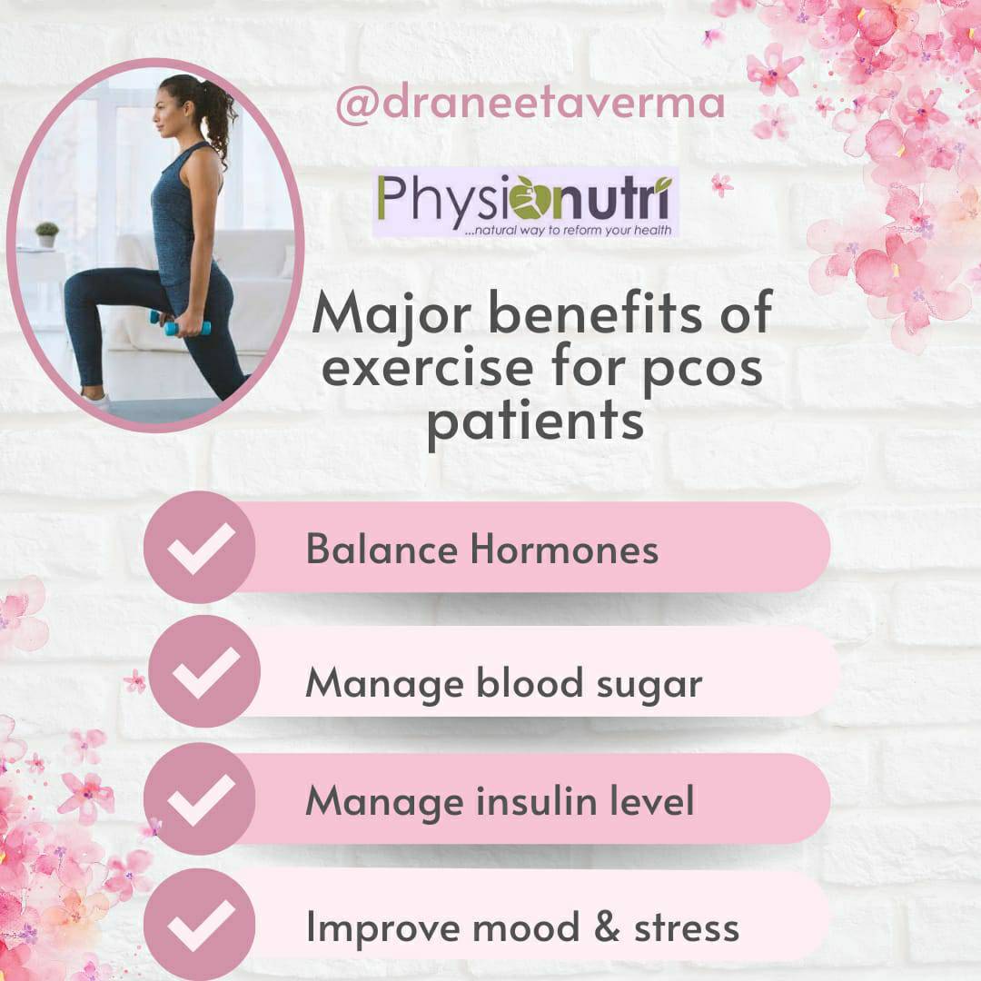 Major Benefits of Exercise for PCOS Patients : Exercise is not so easy task to do everyday but we all know how beneficial it is to stay active and energetic. Physiological effect of exercise improve cardiovascular health that directly improve soft organs functioning. Women reproductive organs are highly sensitive to lifestyle, active lifestyle keep organs healthy and active. Exercise play it's major role in patients of PCOD/PCOS. Two major components to keep PCOS symptoms under control are Good Nutrition and Exercise. Yoga found to be very effective in hormonal imbalance. Mudra and yoga postures help to regain good health. Exercise cause postive effect to : 1. Balance Hormones 2. To maintain blood glucose 3. To maintain insuline level 4. Help to reduce stress and improve mood. Well planned wellness program under experienced wellness coach can help patient to reverse many symptoms. Proper exercise regimen help patients to maintain body flexibility, strength and endurance. Well balanced diet plan with exercise create a beautiful change over at both physical and mental level.