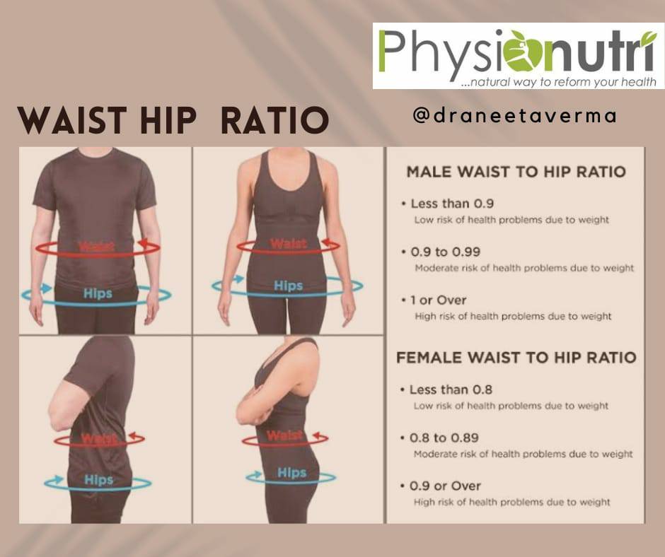 You should know about Waist Hip Ratio (WHR) : circumference of your waist divided by circumference of your hip give you WHR which is a very good measure of health in relation to obesity. It tells us about central obesity. Central obesity is the increased waist or say tummy area cause heart problem, diabetes type 2 etc to prevent such disorders, keeping eye on WHR can help. Every one should measure it time to time with body weight. It should be below 0.85 in women and 0.96 in men. If it increases it is indicates high risk lifestyle diseases. Measuring it at home is very easy stand relax inhale deep and exhale to relax then measure the circumference of waist and hip. Now calculate it by dividing waist circumference to the hip circumference. If it is coming more than required, you need to work on it to reduce it to normal to prevent disorders specially cardiac disorders and diabetes. If you need professional consultation for diet and exercise to get back in normal waist hip ratio, call us to get professional consultation about health and preventive health care. Nutrition therapy to maintain good WHR. Also to prevent many lifestyle disorders including - thyroid, PCOD, Fatty liver, uric acid, joint pain, hypertension, diabetes type 2, etc. We wish you good health and active life every day subscribe our newsletter to get updates about health, wellness and fitness under guidance Dr Aneeta verma, experienced in preventive and promotive healthcare since 2011. Working on pain management and obesity management to change life of people's. Helping them to prevent lifestyle disorders and improve there quality life.